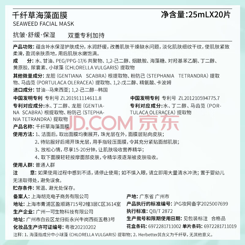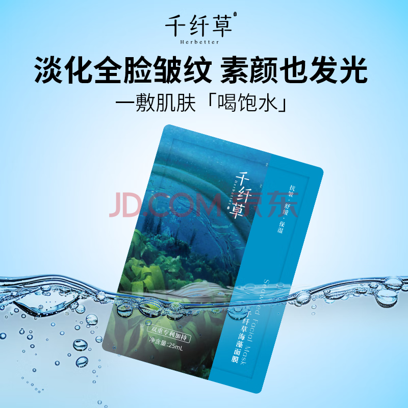 商品相册:千纤草海藻面膜补水保湿抗皱紧致淡纹晒后舒缓温和无刺激20片第