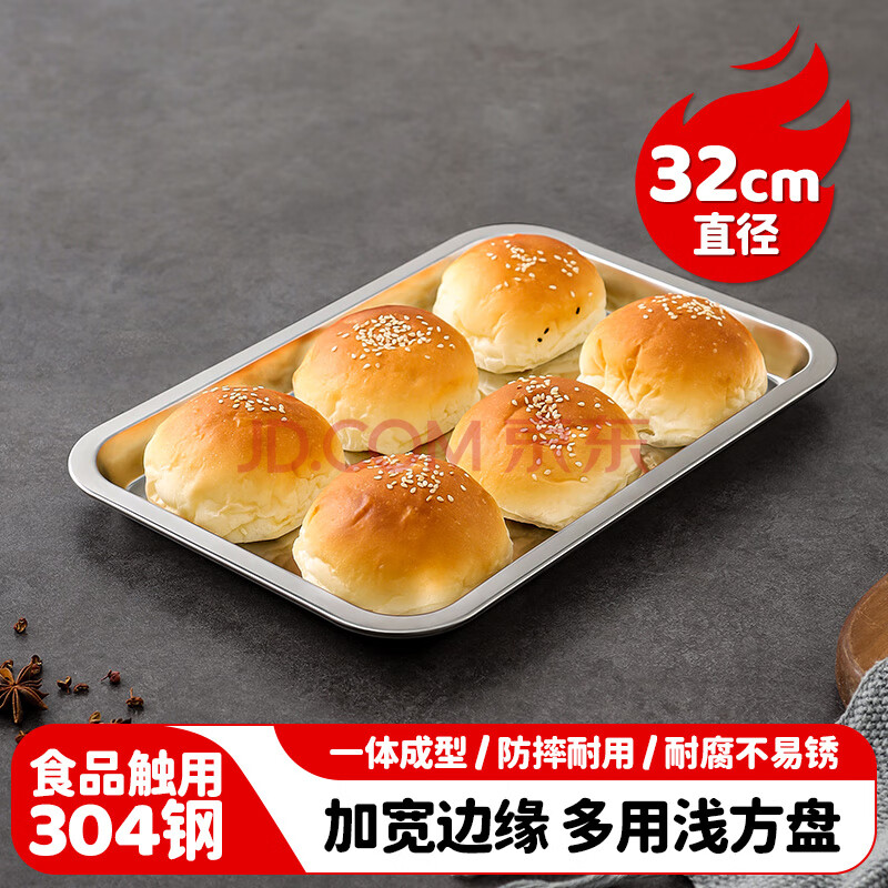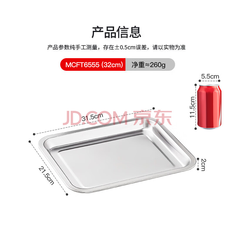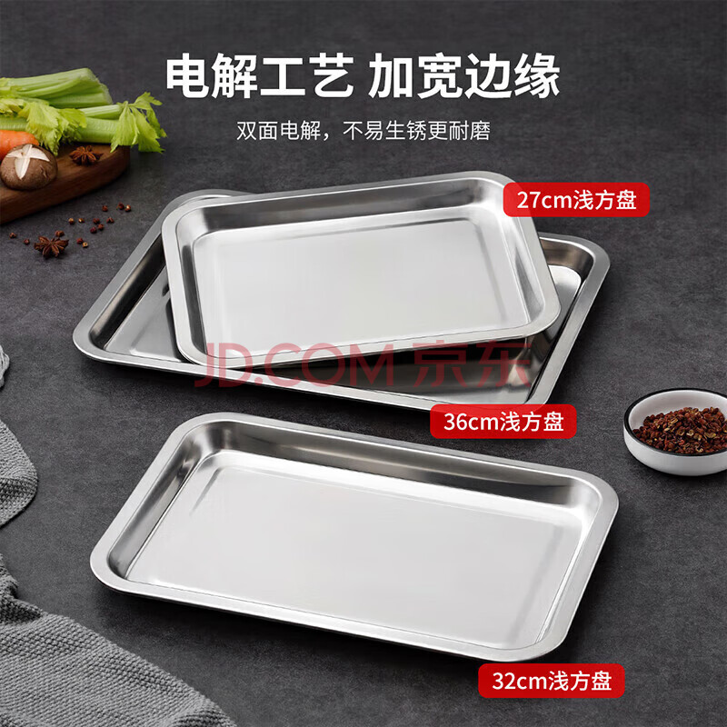 商品相册:美厨(maxcook)304不锈钢盘子方盘 加深方盘长方形餐盘 烧烤托盘32cm MCFT6555第