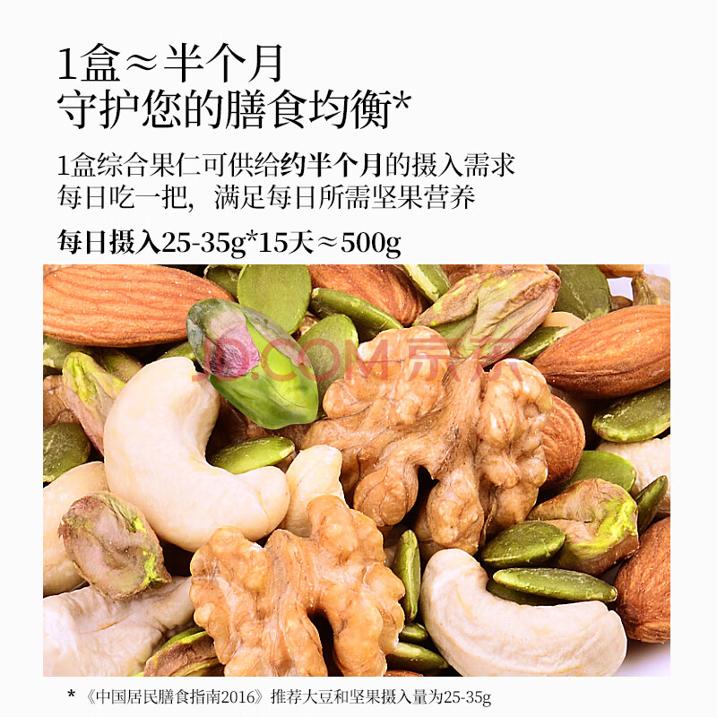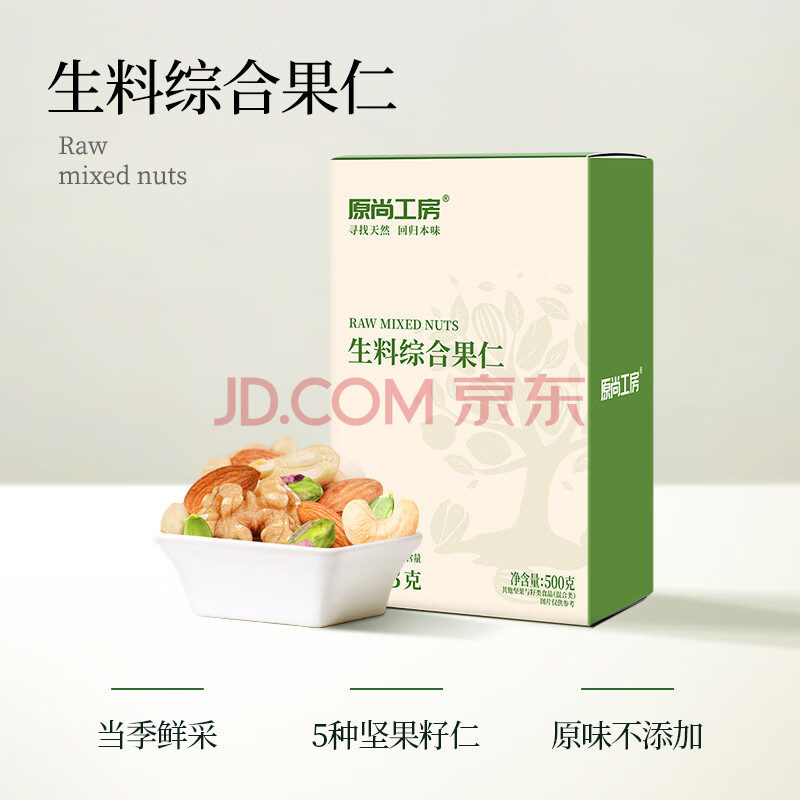 商品相册:原尚工房原味综合果仁生料500g坚果炒货休闲零食腰果巴旦木开心果年货第1张/共7
