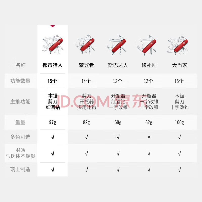 商品相册:维氏瑞士军刀都市猎人15项多功能水果刀刀折叠刀黑色1.3713.3第