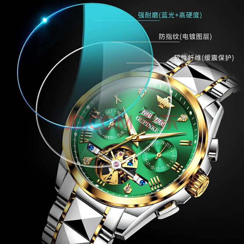 商品相册:欧品客手表男机械手表全自动夜光镂空高档生日礼物瑞士认证品牌男士名表第