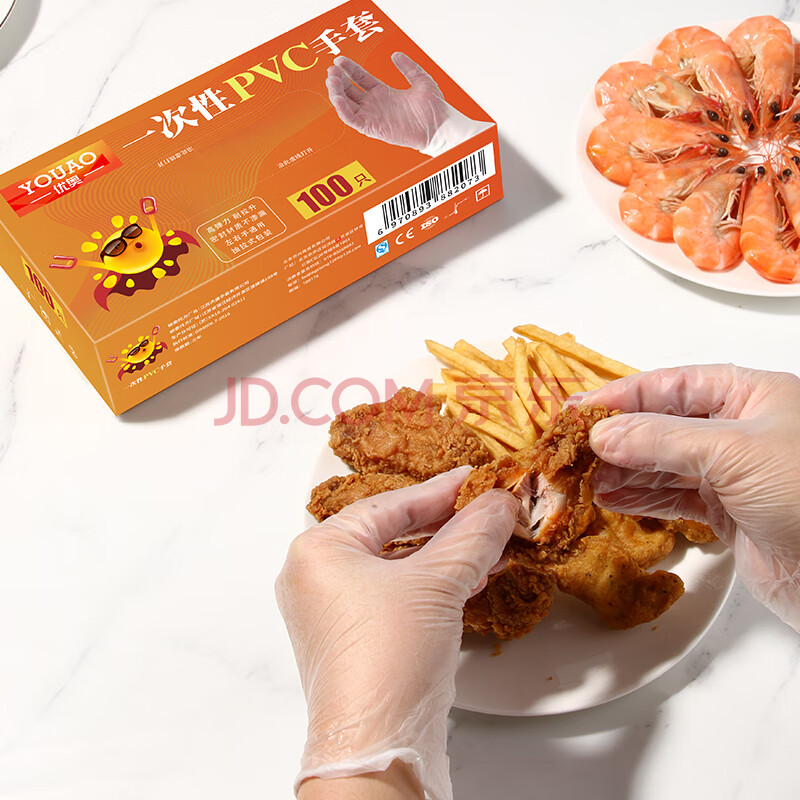 商品相册:优奥一次性手套PVC食品级加厚实验美容烘焙餐饮厨房清洁家用100只M号第