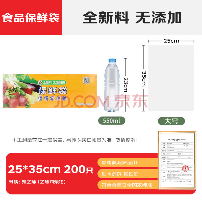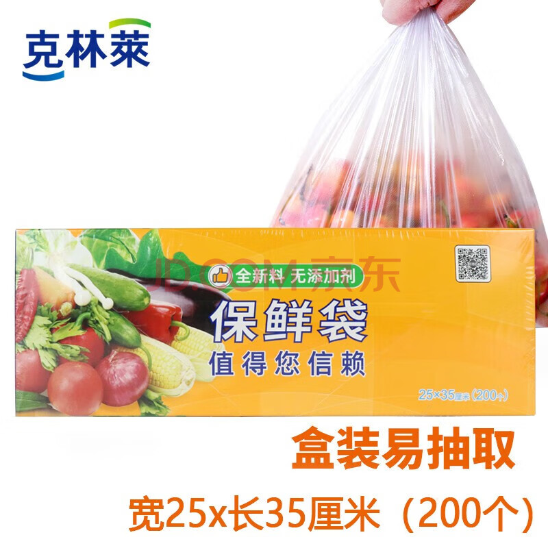 商品相册:克林莱一次性保鲜食品袋200个25x35cm抽取式盒装加厚冰箱微波炉适用第