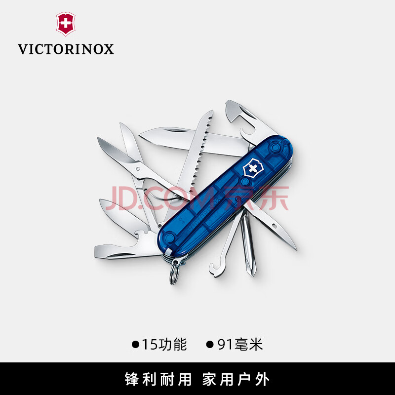 商品相册:维氏瑞士军刀大当家15项多功能水果刀刀折叠刀蓝色1.4713.T2第1张/共8