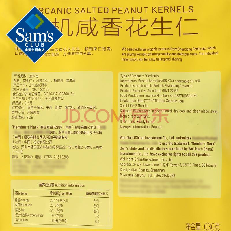 商品相册:Member's Mark 有机咸香花生仁 630G 630g*1袋第