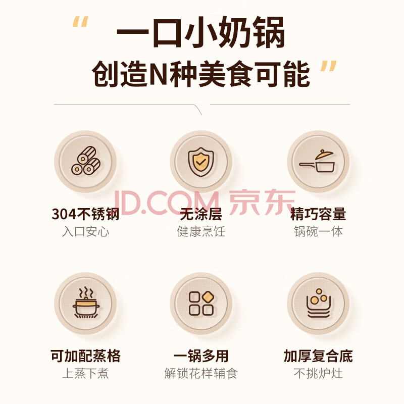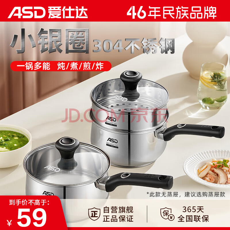 商品相册:爱仕达 ASD 奶锅304不锈钢18CM泡面锅辅食锅小锅电磁炉燃气通用NS18B1WG第
