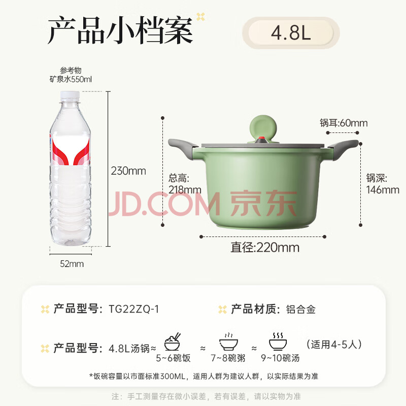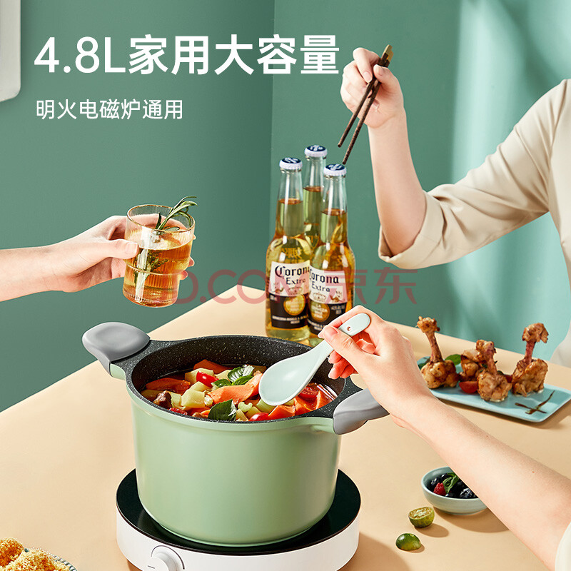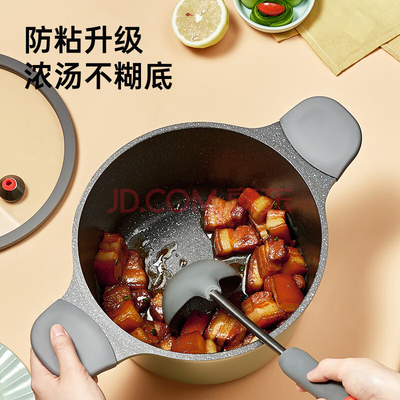 商品相册:炊大皇 微压汤锅汤蒸炖锅蒸锅双耳煮粥煮面 麦饭石色超轻 电磁炉通用22第