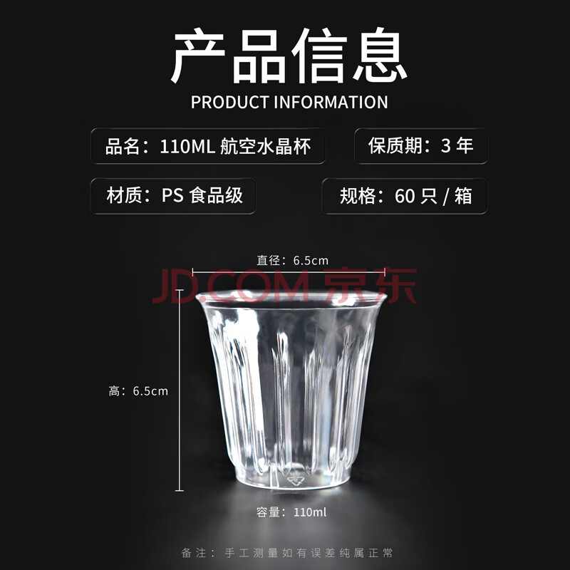 商品相册:芳草地一次性杯子110ML*60只 硬塑料航空杯饮料喝茶杯水帘杯水晶白酒杯第