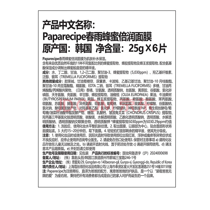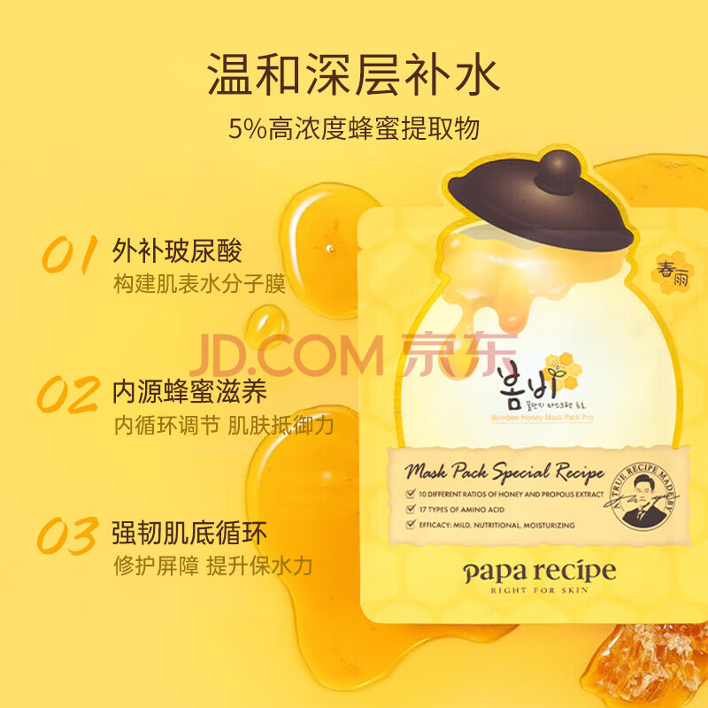 商品相册:春雨(Papa recipe)黄色经典款蜂蜜补水面膜6片 深层保湿情人节礼物送女生第