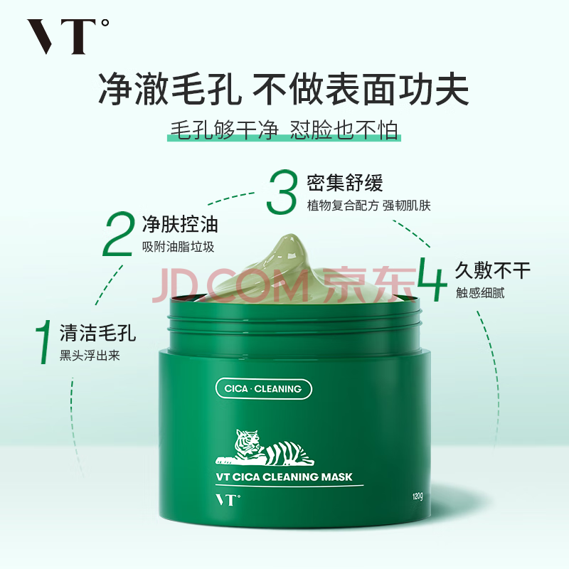 商品相册:VTCICA老虎绿泥面膜120ml 涂抹式清洁毛孔控油泥膜积雪草韩国进口第