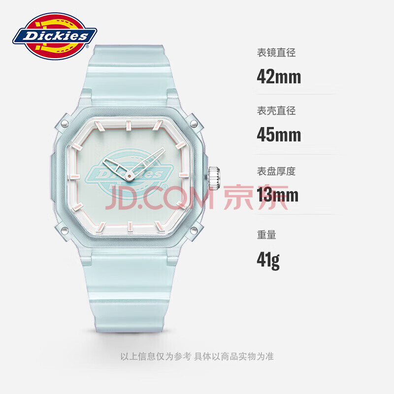 商品相册:Dickies 手表女小方糖学生手表中性运动天蓝色女生日礼物CL-318P2-24第
