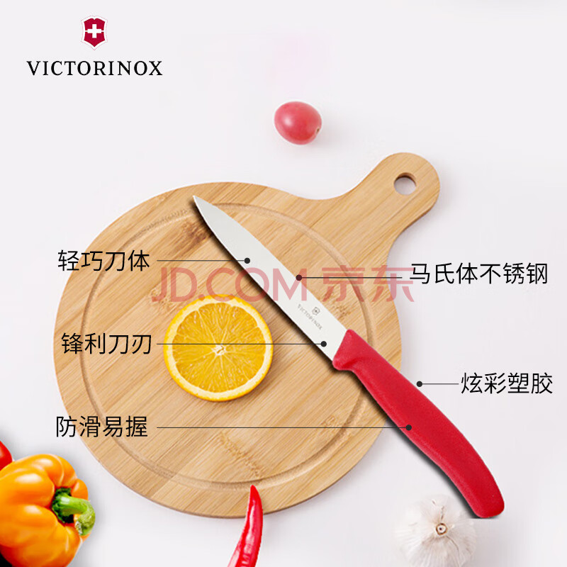 商品相册:维氏瑞士军刀水果刀面包刀刀具多功能刀不锈钢平刃削皮刀红色6.7701第