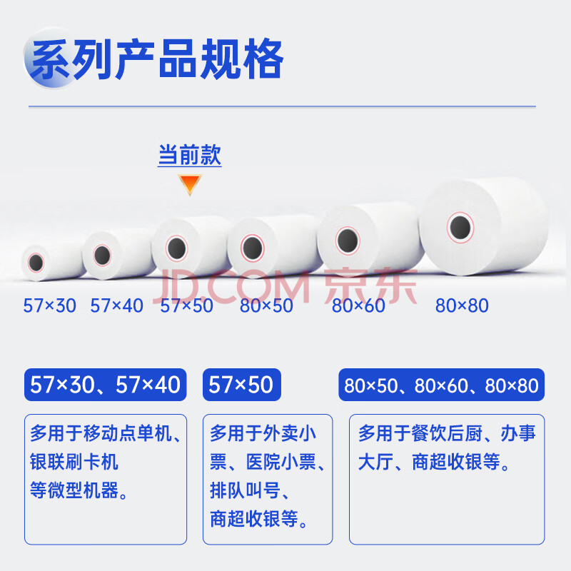 商品相册:得力(deli)57*50型20米*50卷 白令海热敏餐饮纸 京东美团外卖餐饮小票纸 ZS123【适配58mm机器 5801P等】第