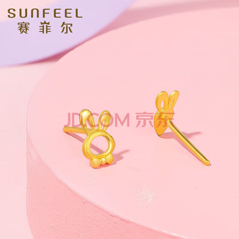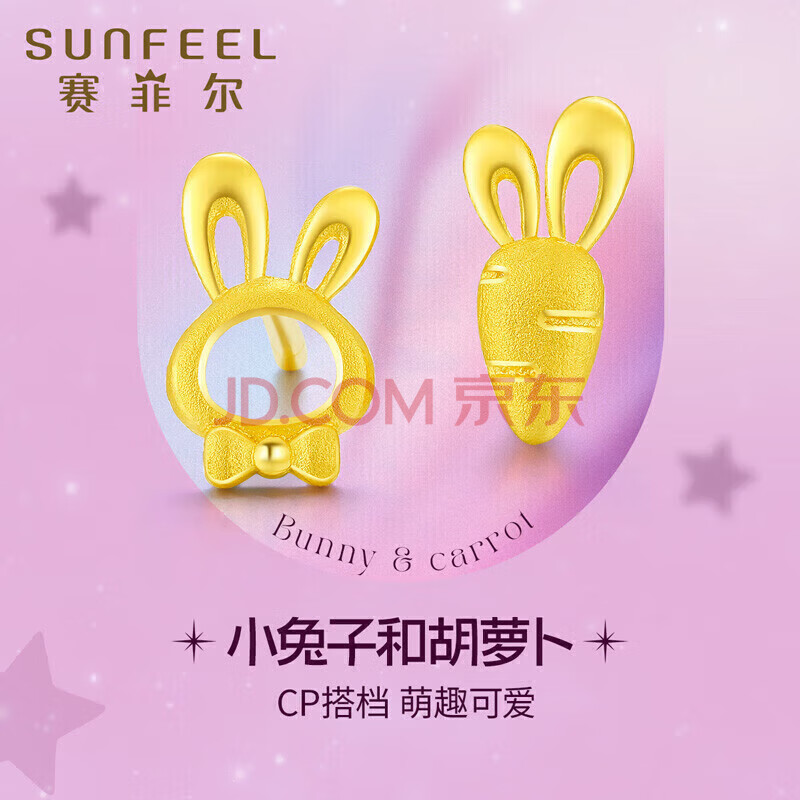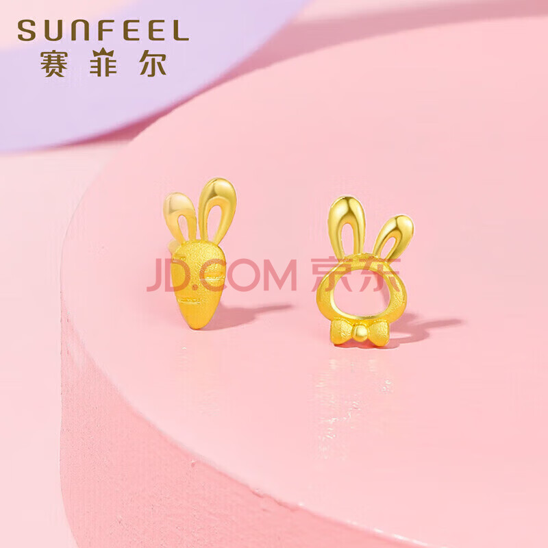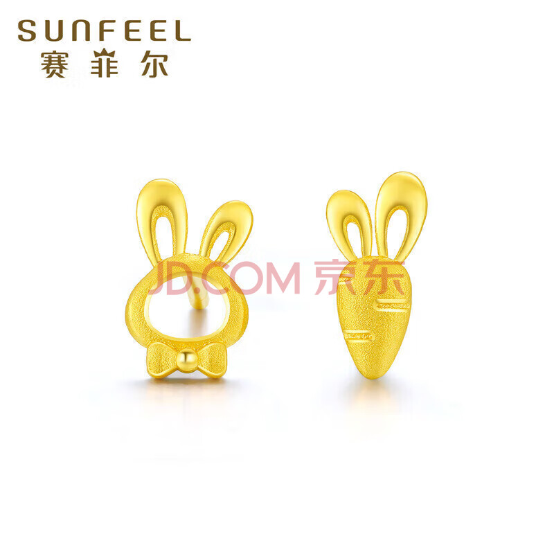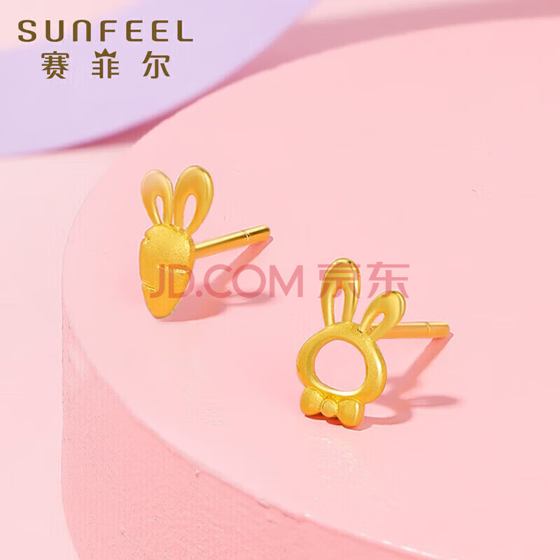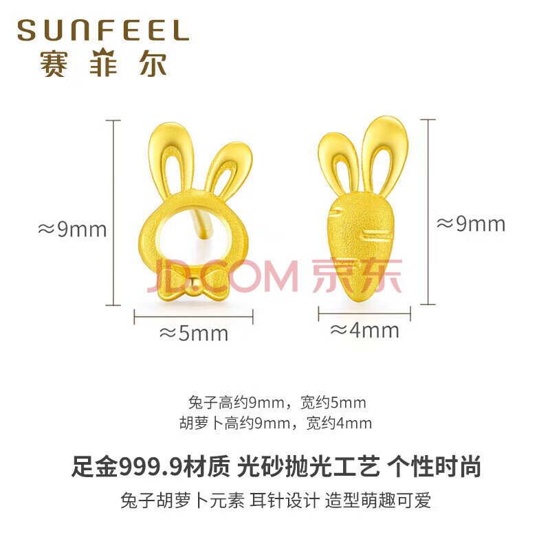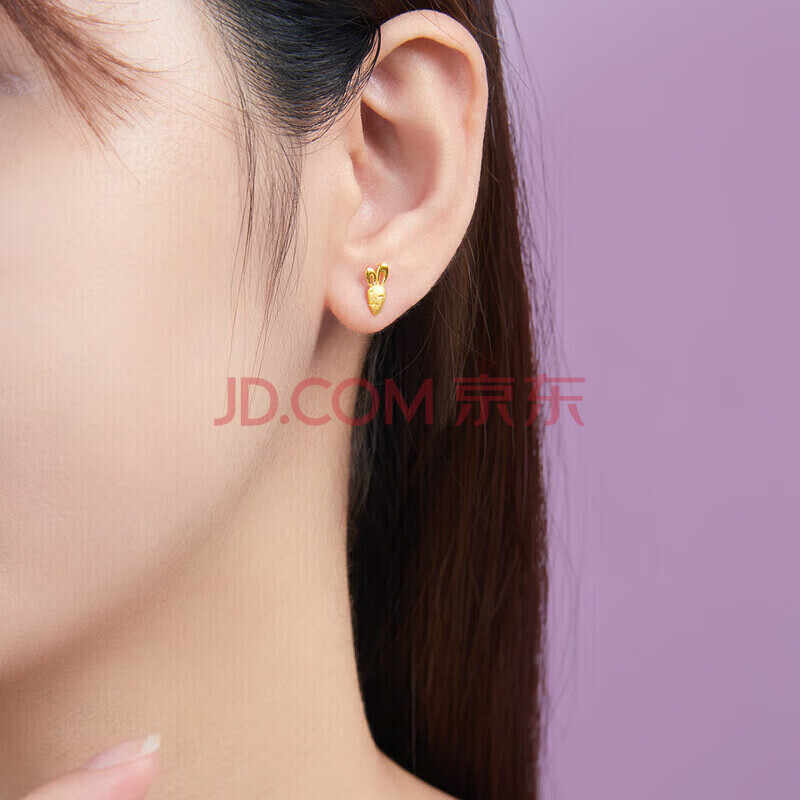 商品相册:赛菲尔 黄金耳饰足金999.9生肖卡通兔子胡萝卜耳钉养耳棒 约1克第