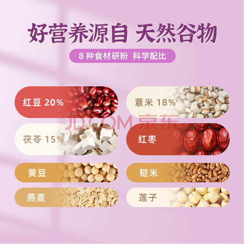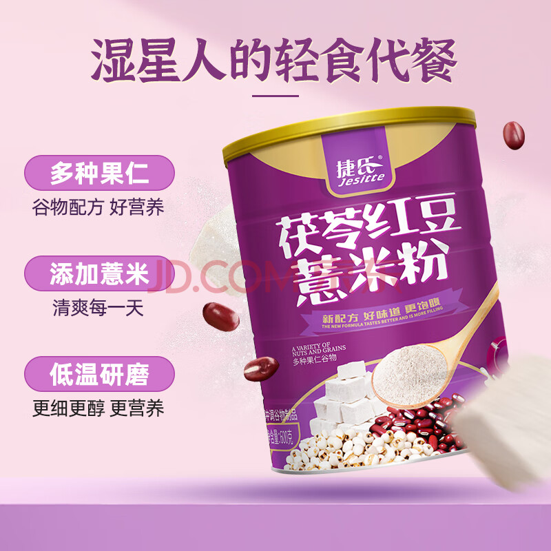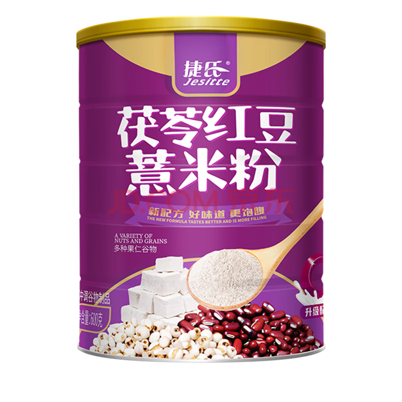 商品相册:捷氏茯苓红豆薏米粉薏仁粉600g五谷粉粗粮中老年人低脂肪营养食品健康第