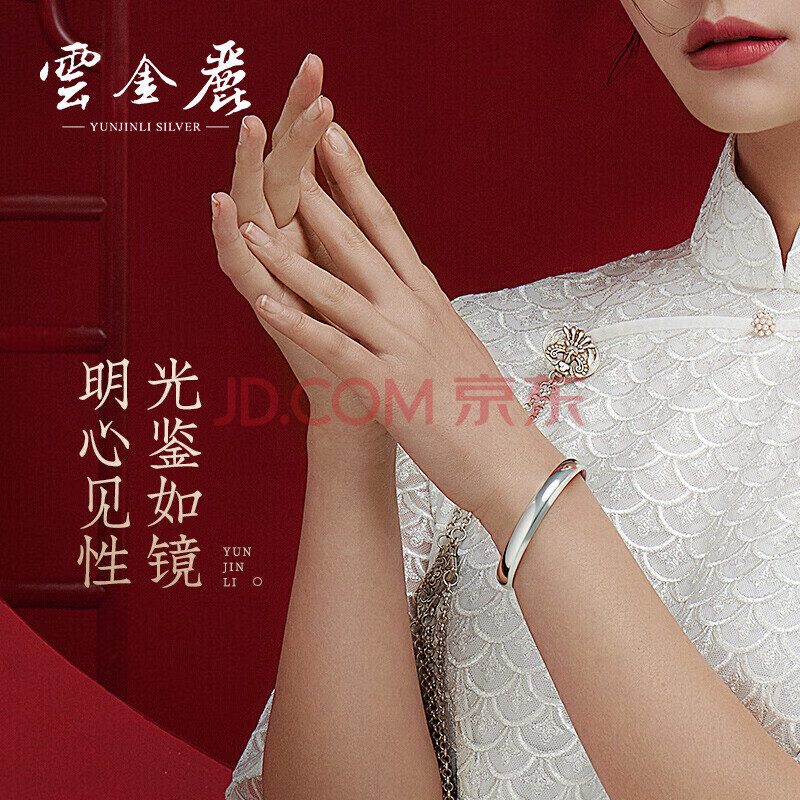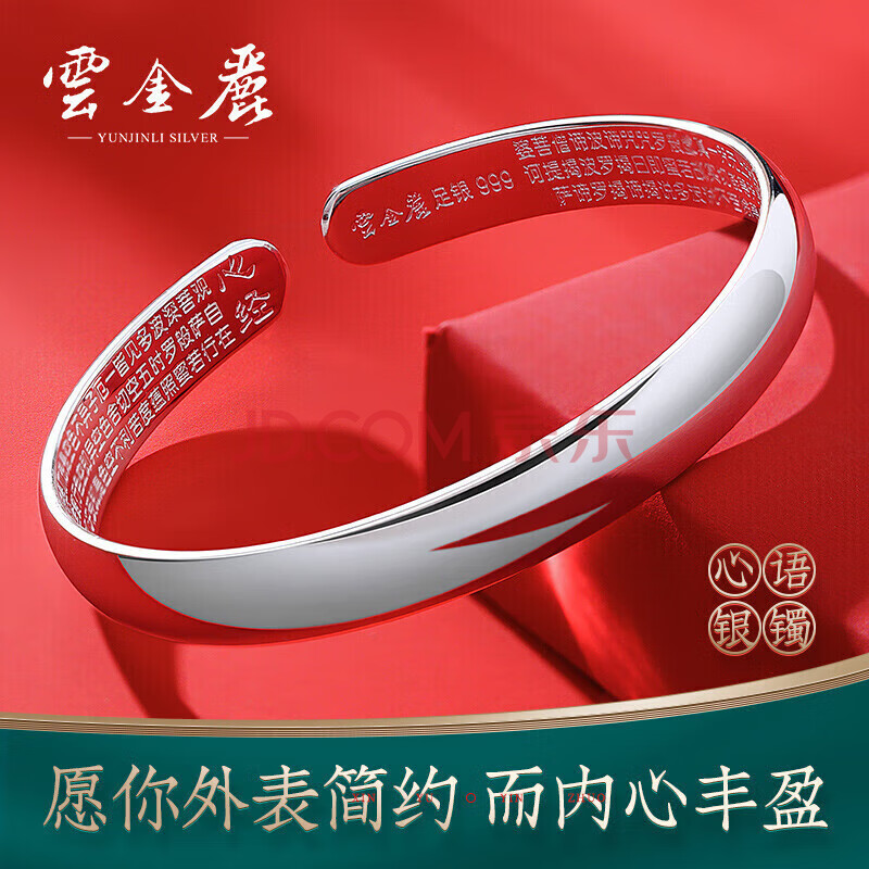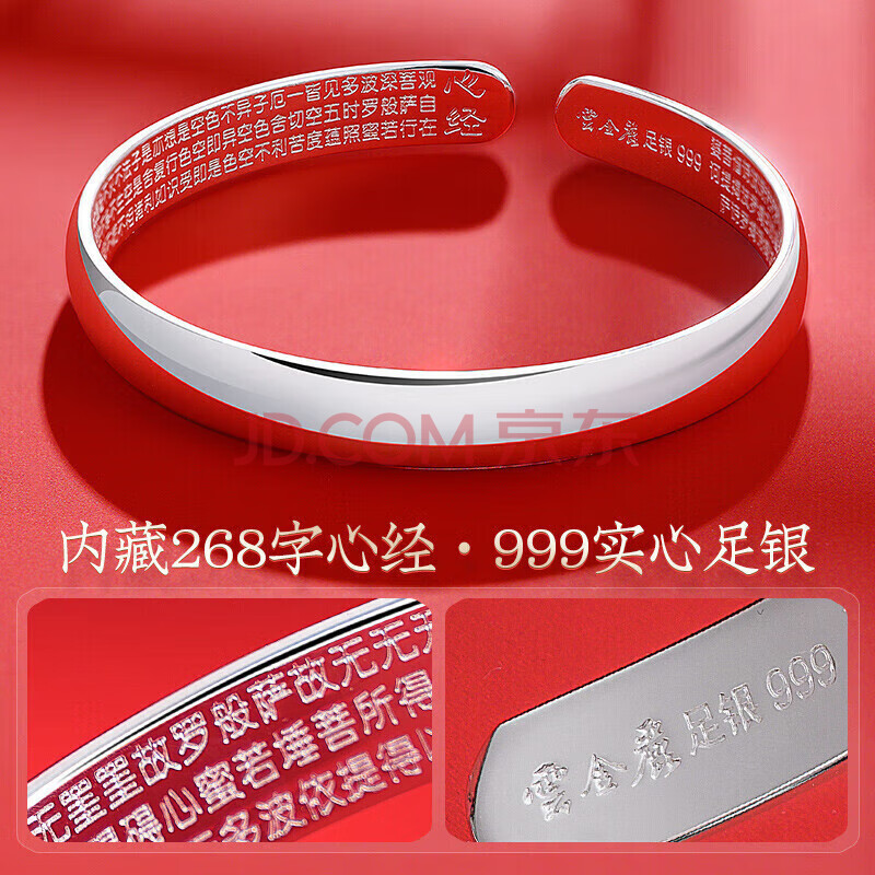 商品相册:云金丽银手镯999足银民族风心经光面开口实心银镯子实用送妈妈生日礼物第