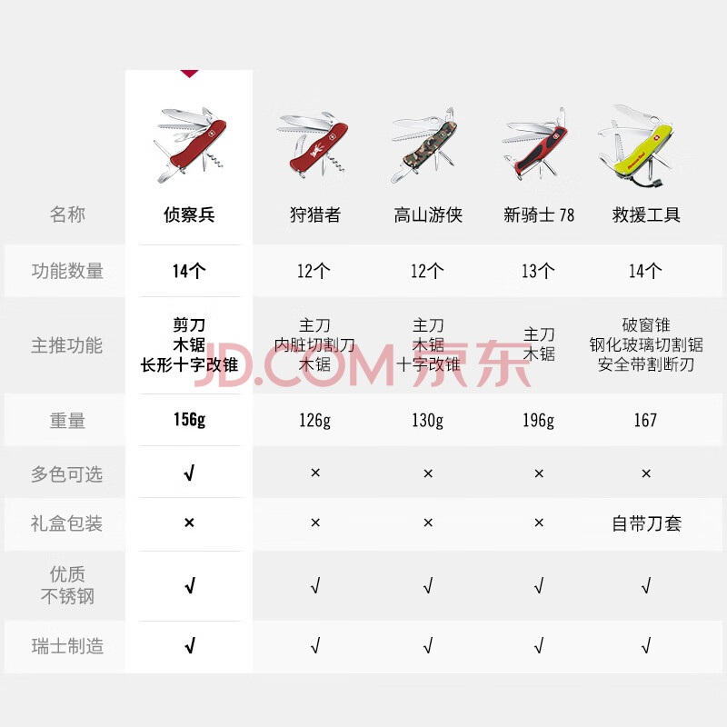 商品相册:维氏瑞士军刀侦察兵14项多功能水果刀刀折叠刀黑色0.8513.3第