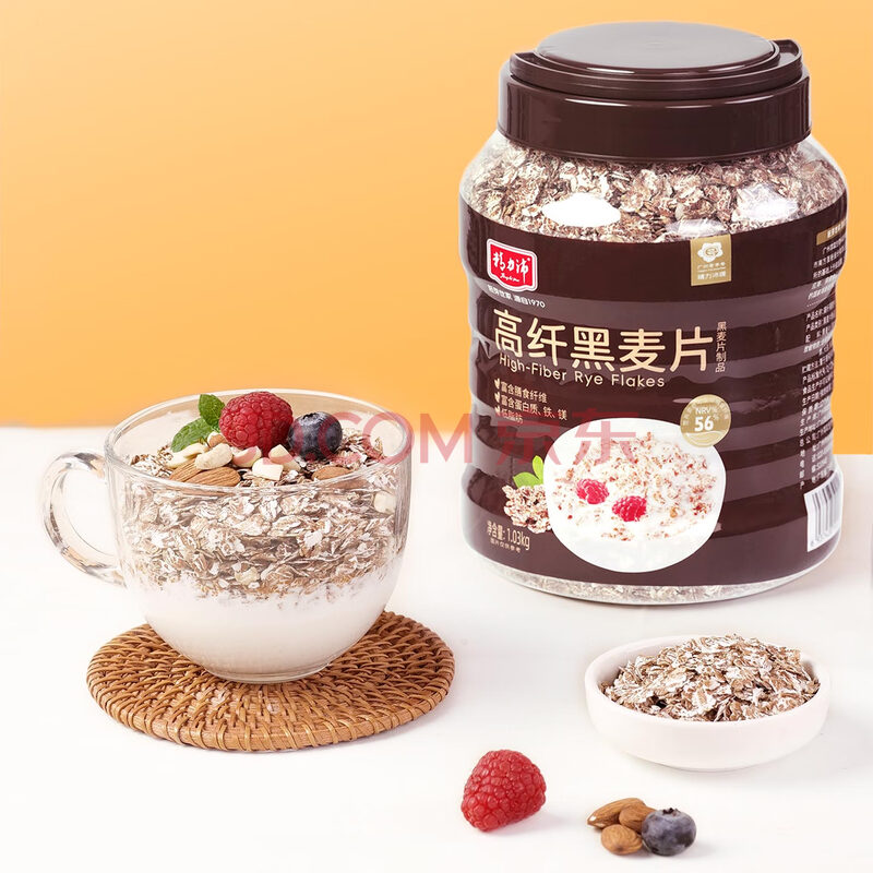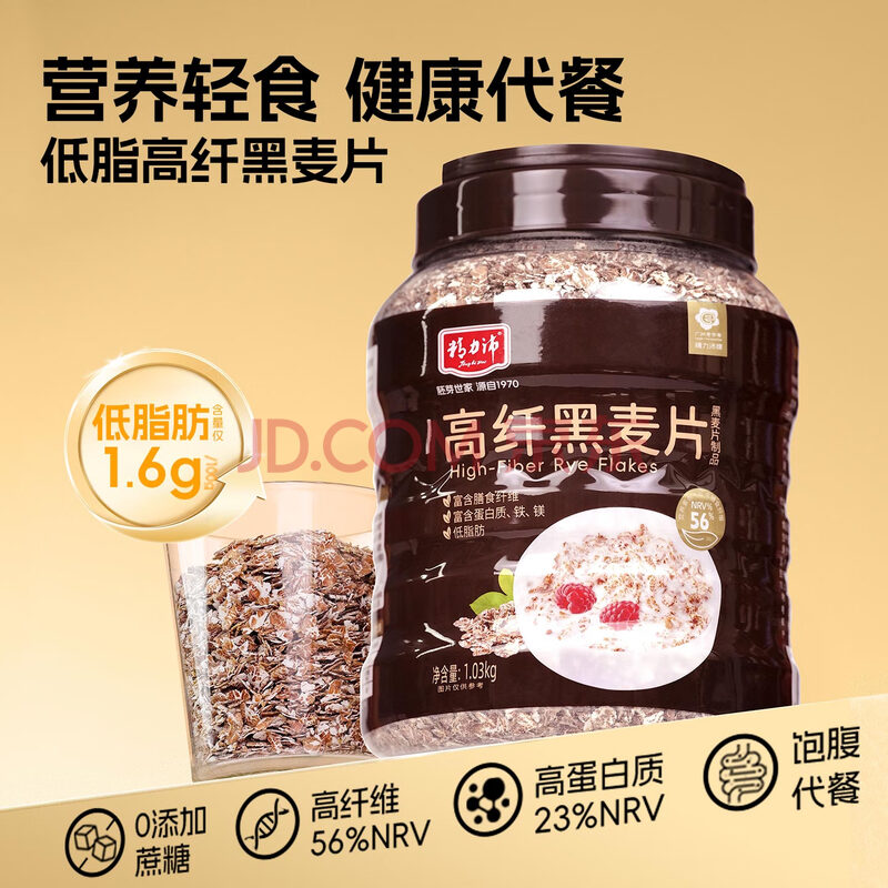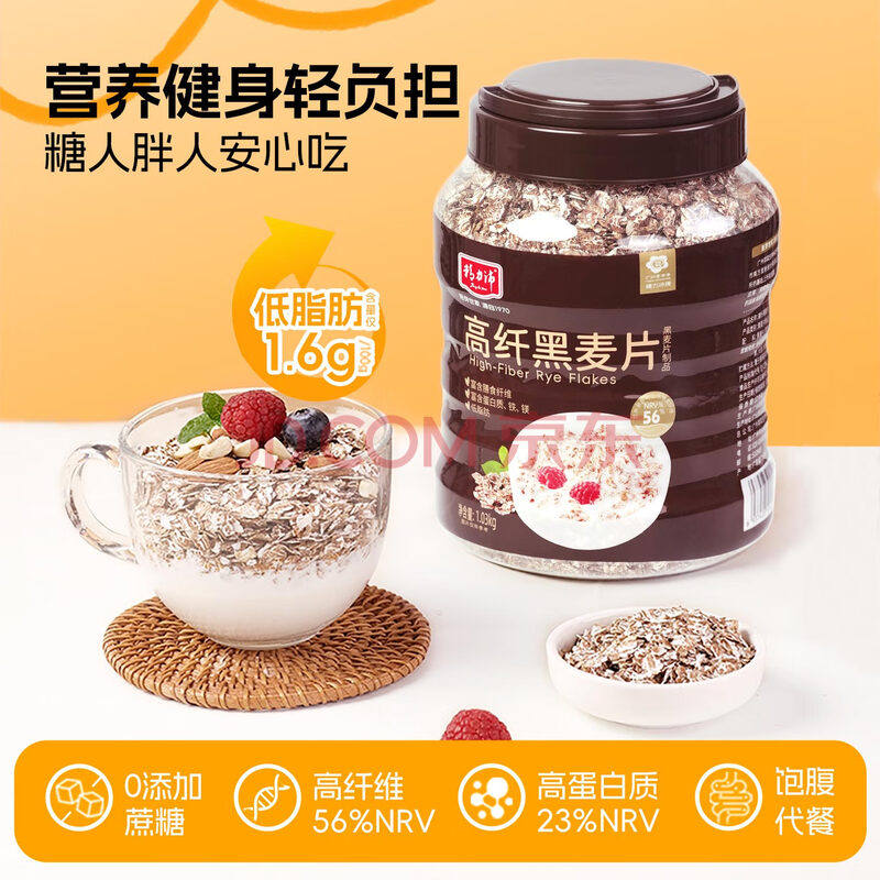 商品相册:精力沛高纤黑麦片1030g/罐 营养低脂肪高蛋白代餐健身即食燕麦无加蔗糖第