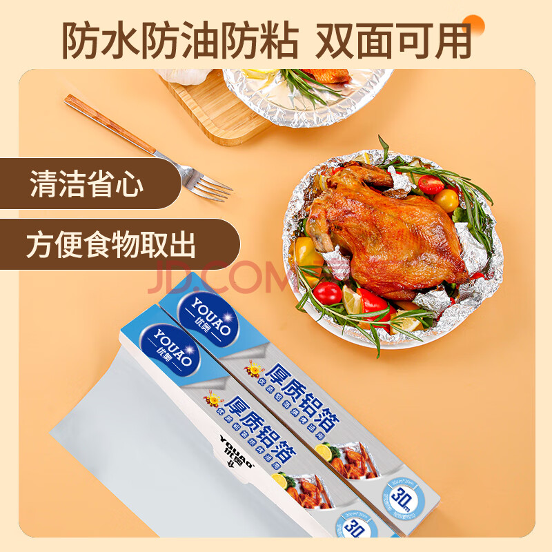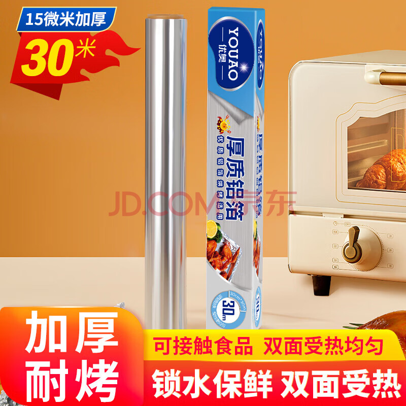 商品相册:优奥 加厚铝箔锡纸30cm*30m*15mic空气炸锅纸烘培烧烤烤箱锡箔纸第