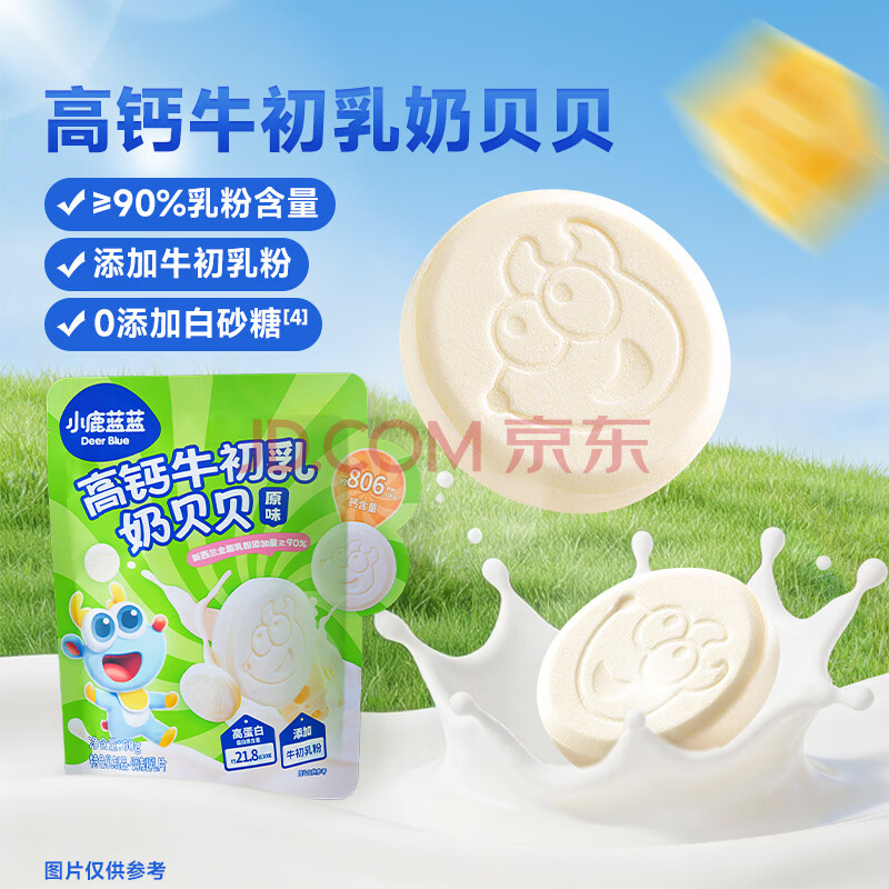 商品相册:小鹿蓝蓝 牛初乳奶贝贝 儿童宝宝零食宝宝奶片含牛初乳酥脆易咀嚼60g 第