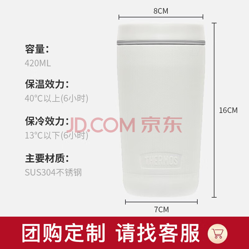 商品相册:THERMOS膳魔师 保温杯420毫升咖啡杯男女情侣学生便携水杯子TCTS-420 WH第