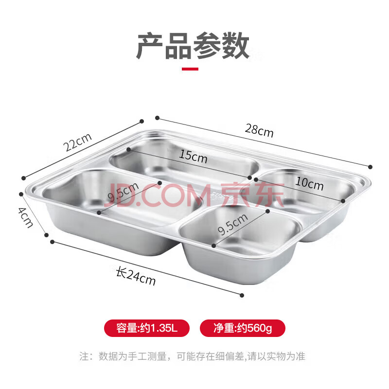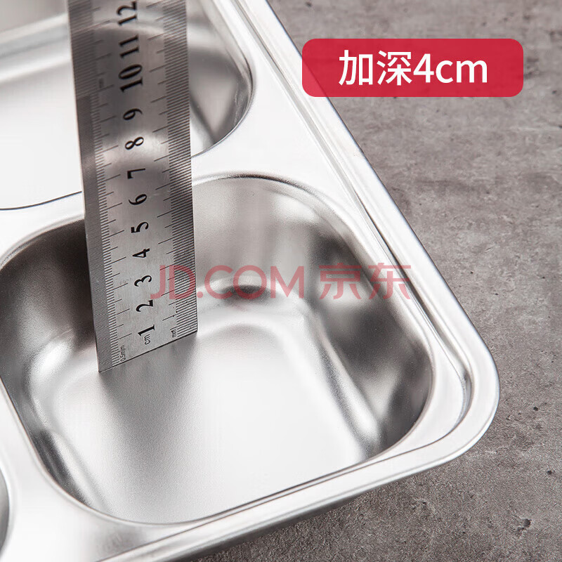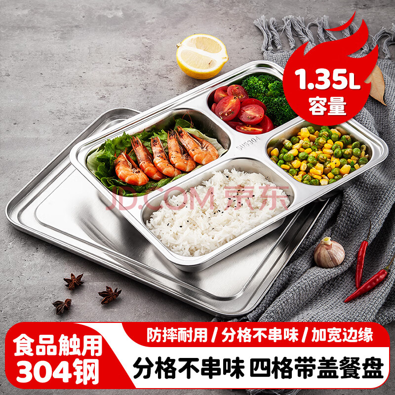 商品相册:美厨(maxcook)全304不锈钢餐盘饭盒 4格加深加厚分格带盖快餐盘学生餐盒MCFT167第