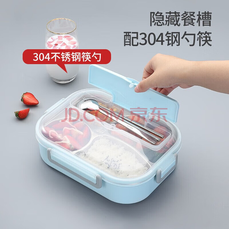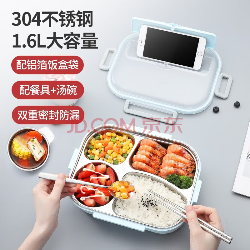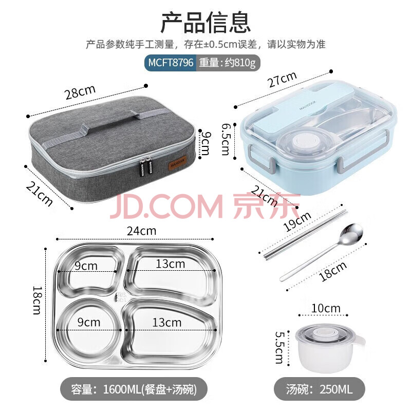 商品相册:美厨(MAXCOOK)304不锈钢饭盒 加大加深4格学生饭盒餐盘1.6L 配保温袋MCFT8796第1张/共7