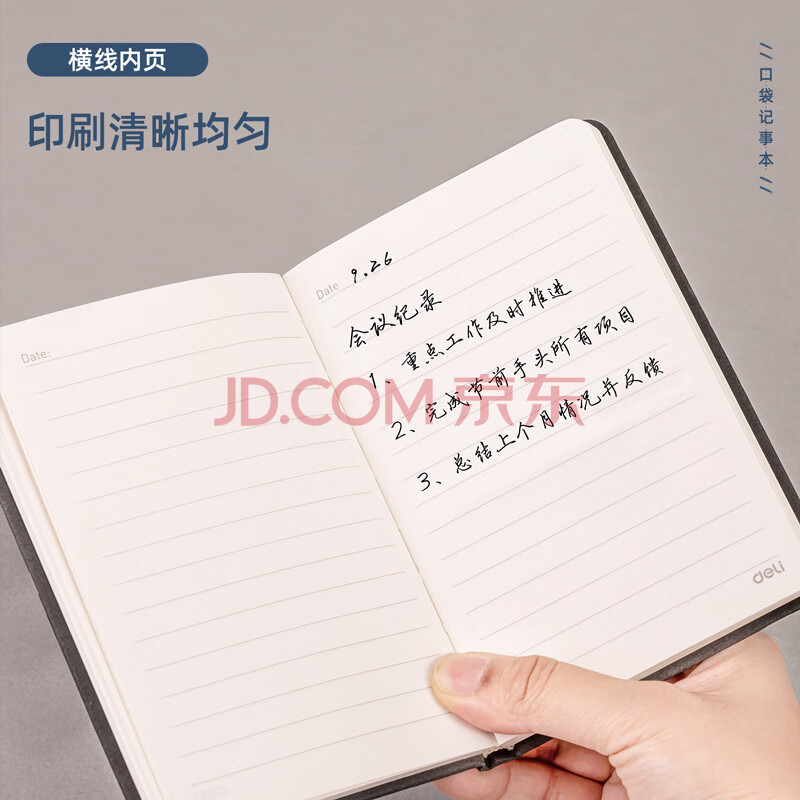 商品相册:得力(deli)时尚口袋本A6/96张便携笔记本子创意型口袋本迷你小本子记事本单词手账本蓝色BP118第