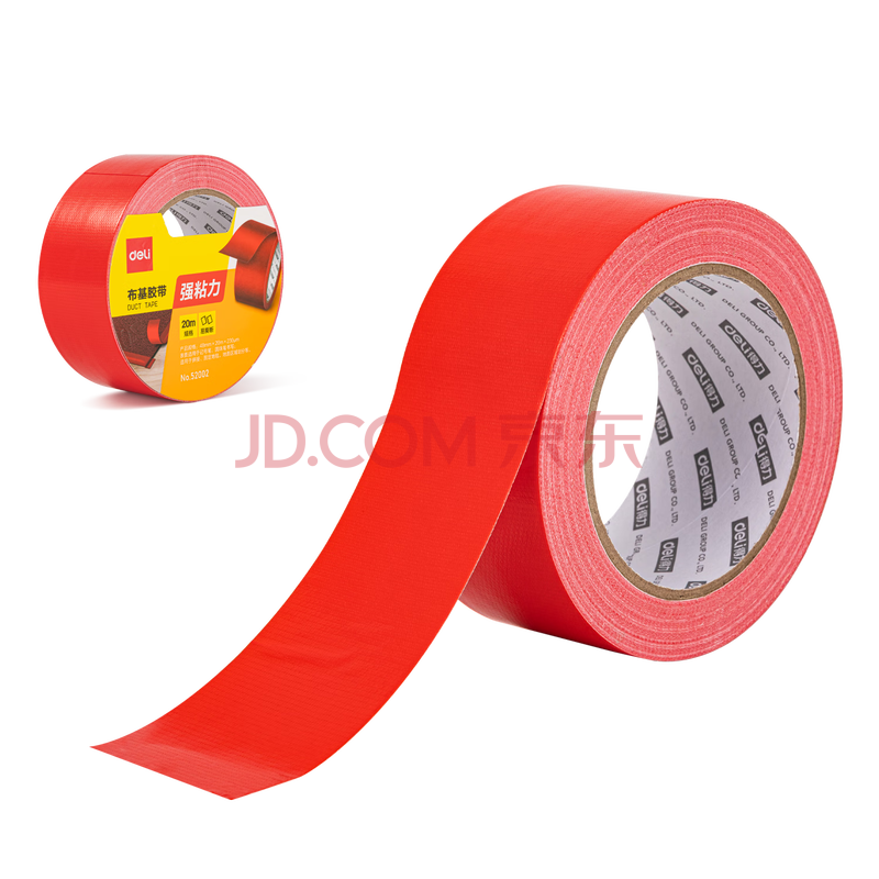 商品相册:得力(deli)强力布基胶带 防台风高粘性耐磨防水胶带 48mm*20m*230μm 地毯固定管道修补密封 红色1卷 52002第