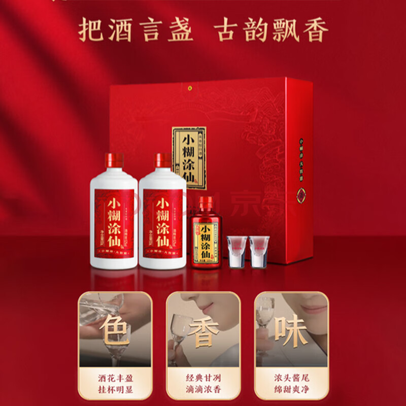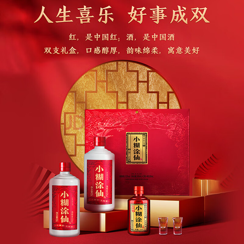 商品相册:小糊涂仙 双支礼盒 浓香型白酒 52度500ml*2瓶+100ml*1瓶典藏小酒年货送礼第
