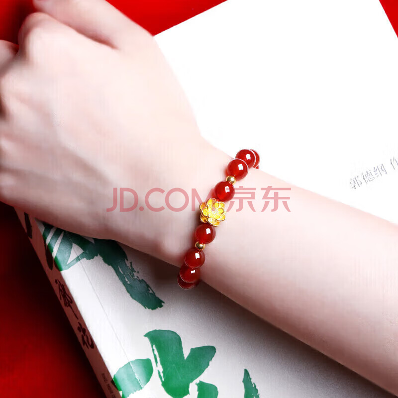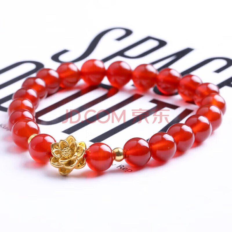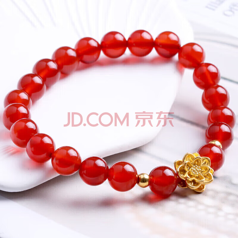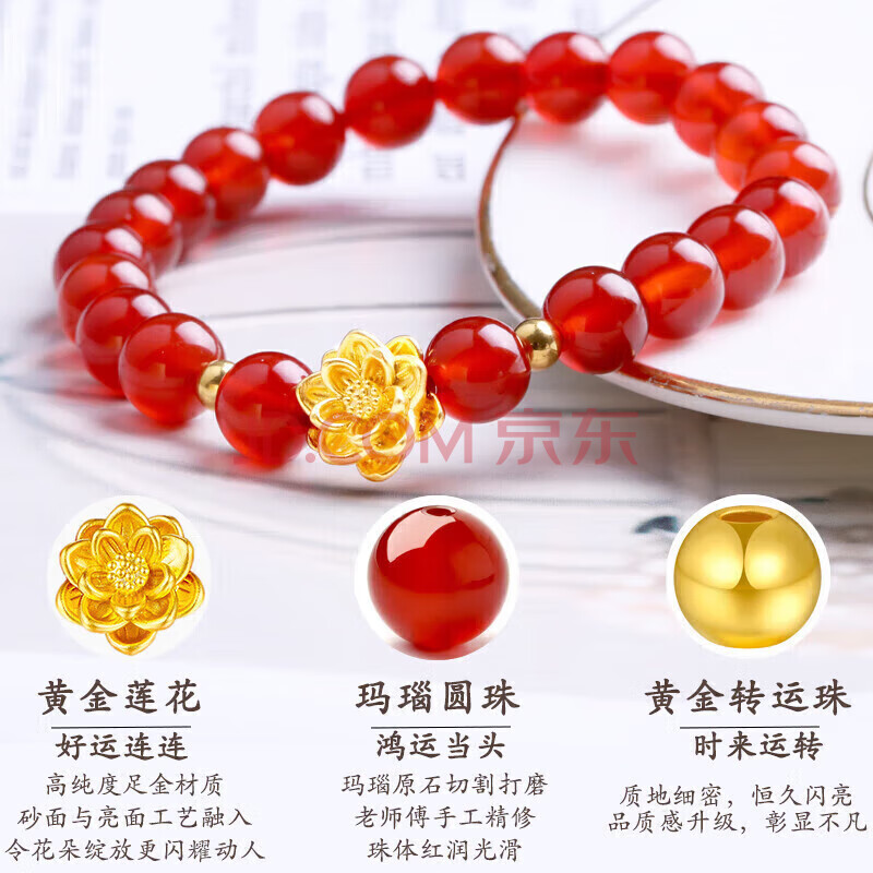 商品相册:石玥珠宝收藏级8mm红玛瑙手串黄金莲花本命年转运珠水晶玛瑙手链男女士款第