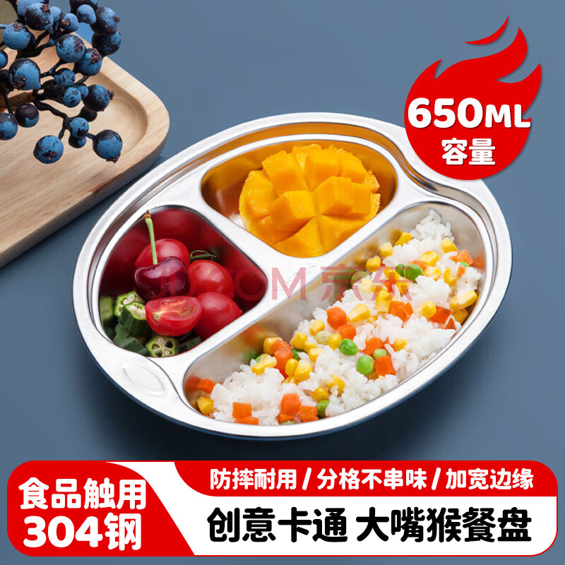 商品相册:美厨(maxcook)304不锈钢餐盘饭盒碗 儿童分格餐盘卡通 3格 猴 MCFT707第