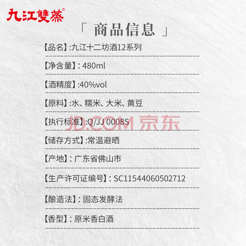 商品相册:九江双蒸米香型白酒 40度十二坊系列480ml年份酒 送礼白酒礼盒第