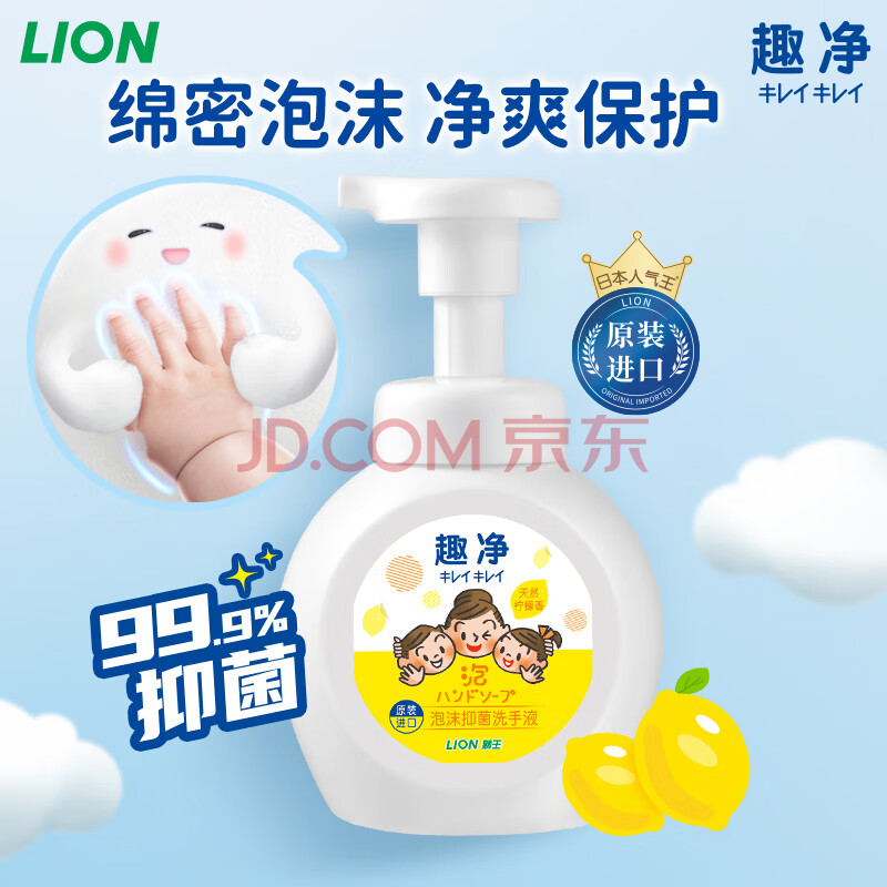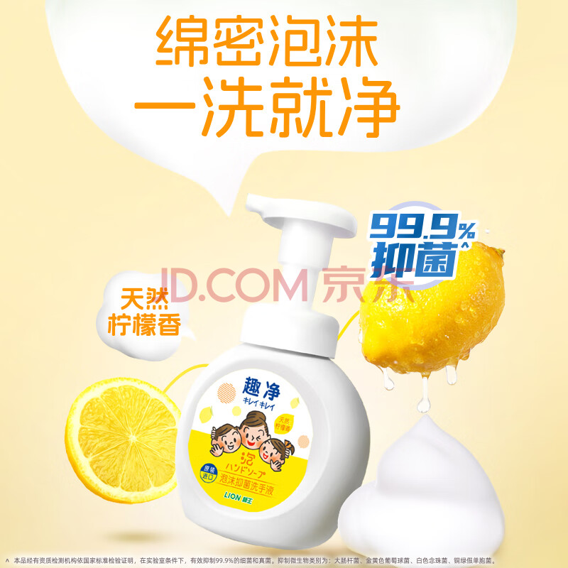 商品相册:狮王(Lion)趣净泡沫抑菌洗手液天然柠檬香250ml绵密泡沫温和全家庭儿童天然第