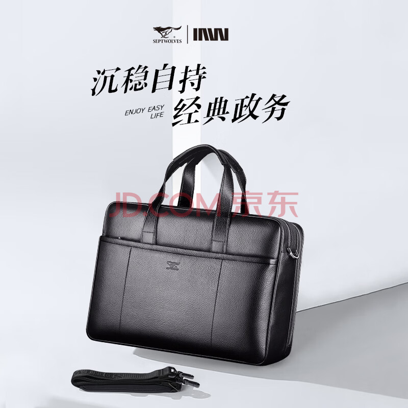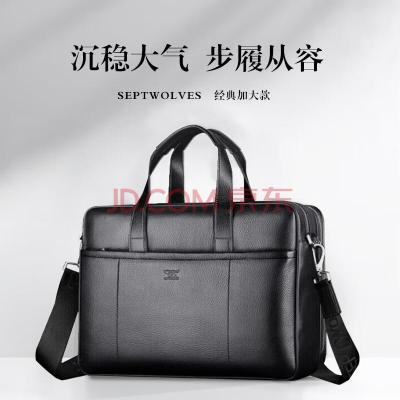 商品相册:七匹狼(SEPTWOLVES)公文包男士头层牛皮商务单肩斜挎大容量15.6英寸电脑手提包节日礼第