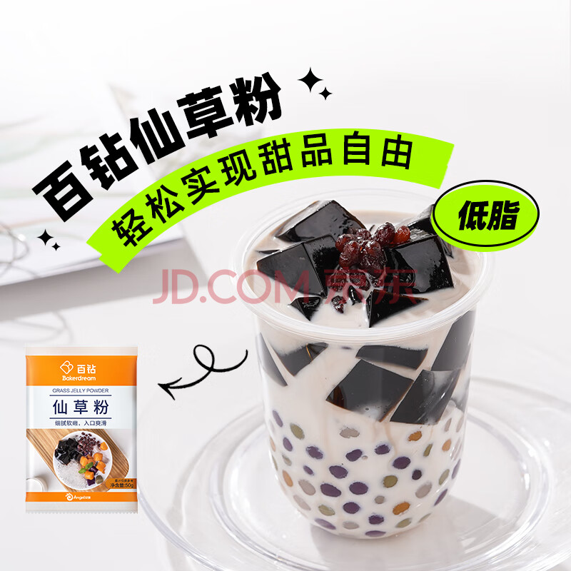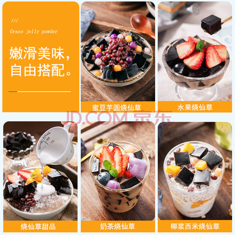 商品相册:百钻仙草粉50g*4袋 烧仙草粉家用自制奶茶甜品水果捞凉粉配料烘焙原料第
