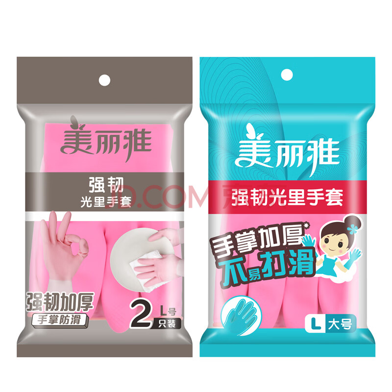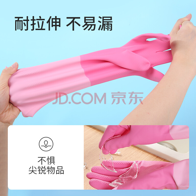 商品相册:美丽雅家务手套1双大号加长30cm加厚耐用防水防滑乳胶皮洗碗厨房清洁第