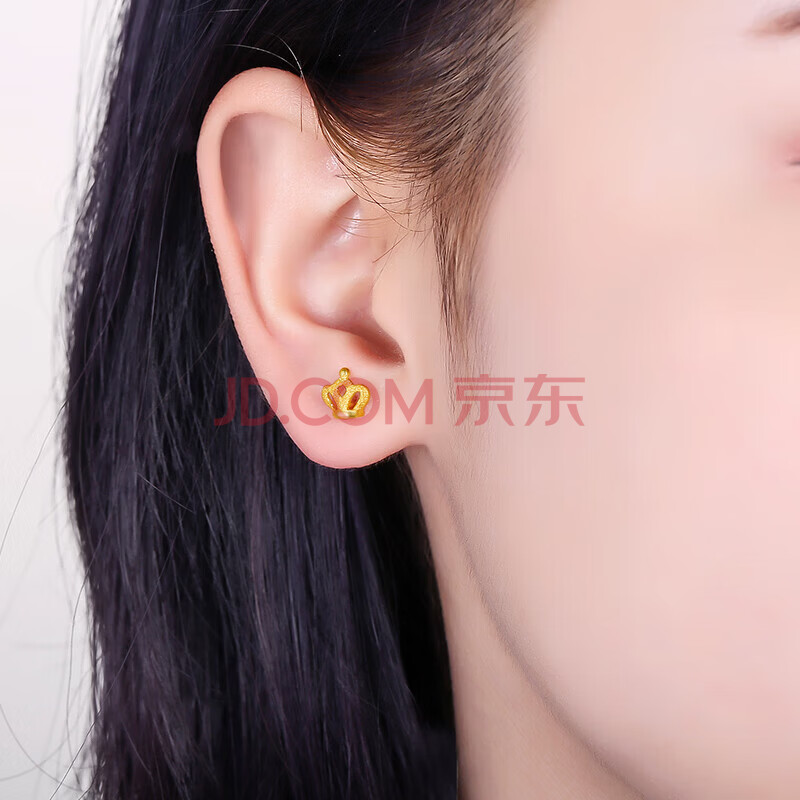 商品相册:周六福皇冠黄金耳钉女足金999耳饰生日礼物计价AC091143 一对 约1.3g第