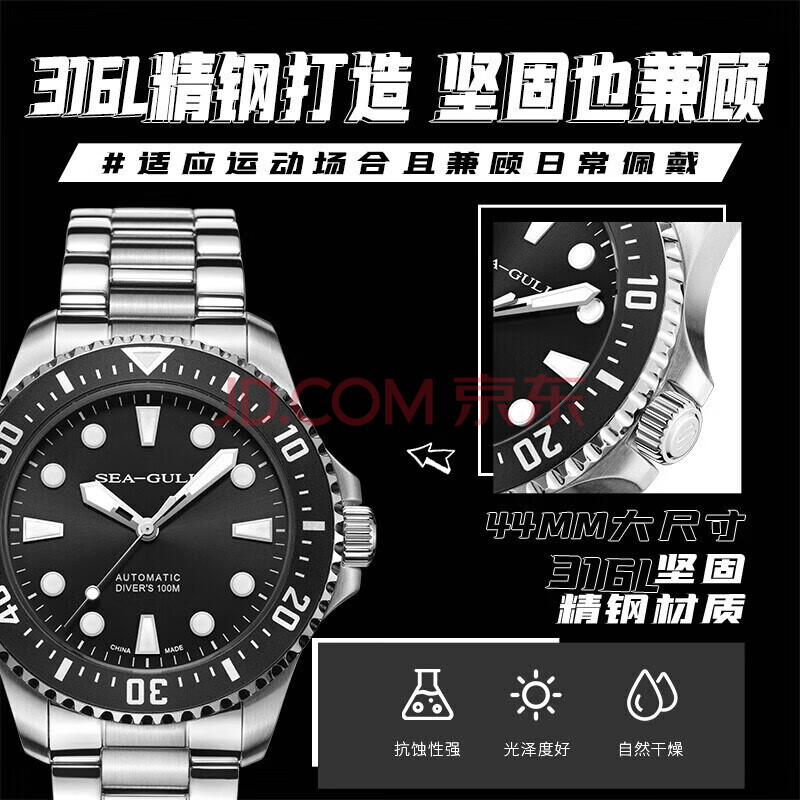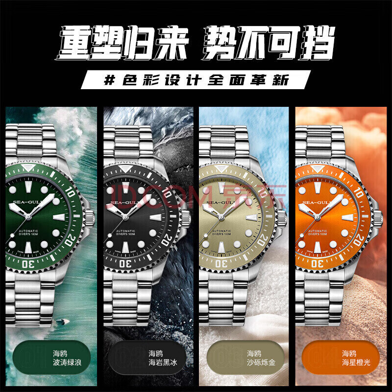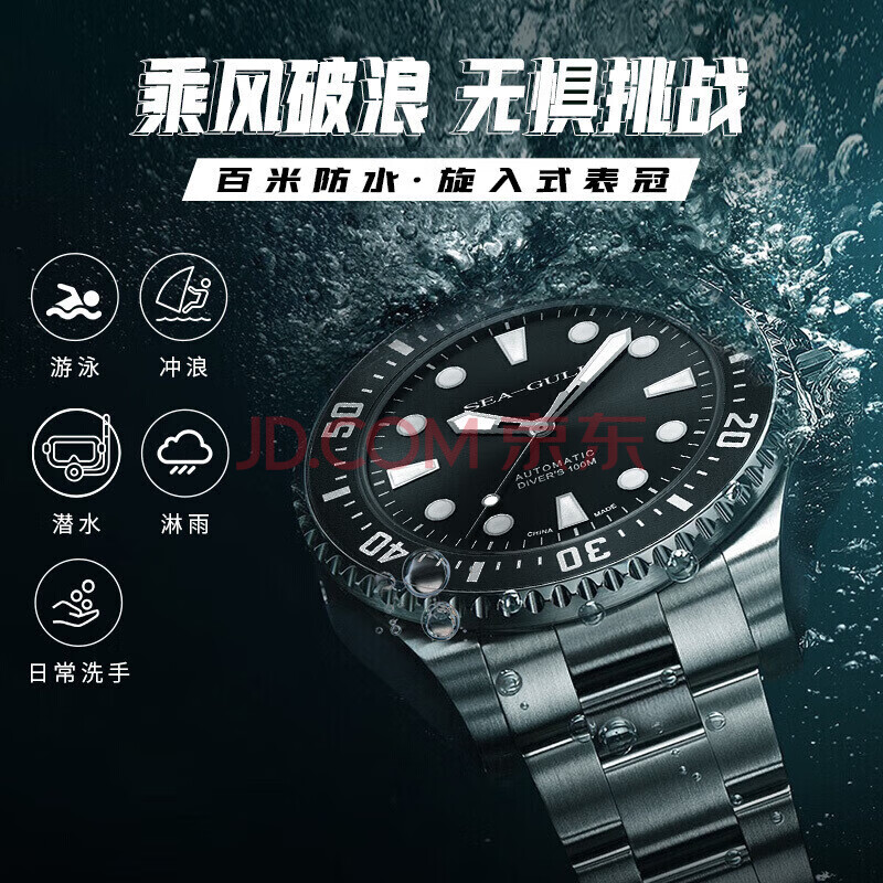 商品相册:海鸥(SEAGULL)手表男士自动机械表 后浪男士手表 生日礼物潜水表 6119海岩黑冰第