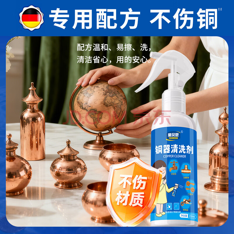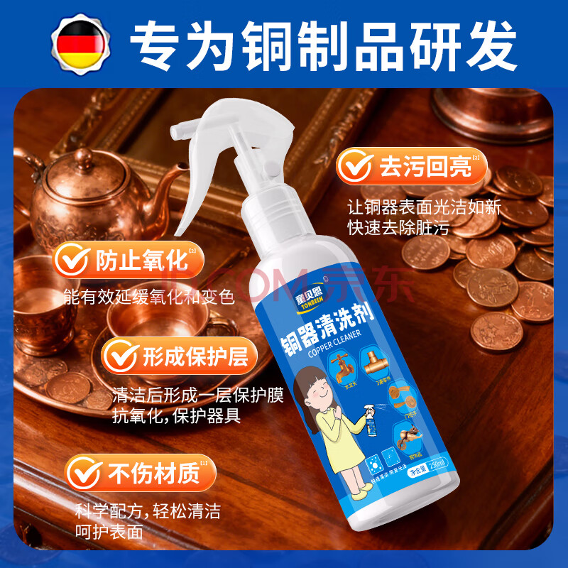 商品相册:童贝恩(TONBEEN)铜锈去除剂洗铜水擦去铜锈铜亮剂防氧化黄铜器清洁清洗翻新250mL第