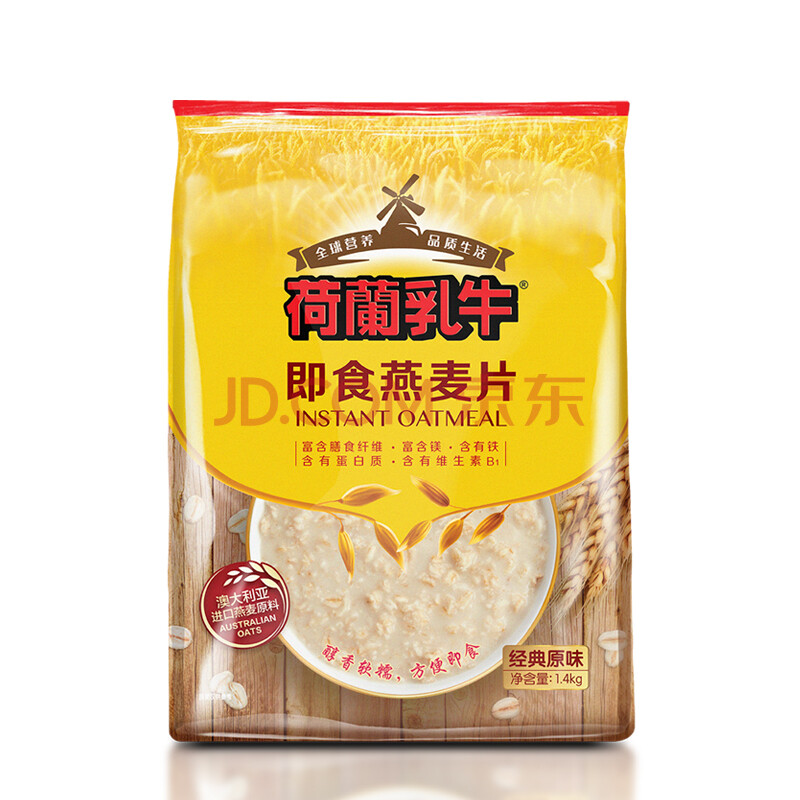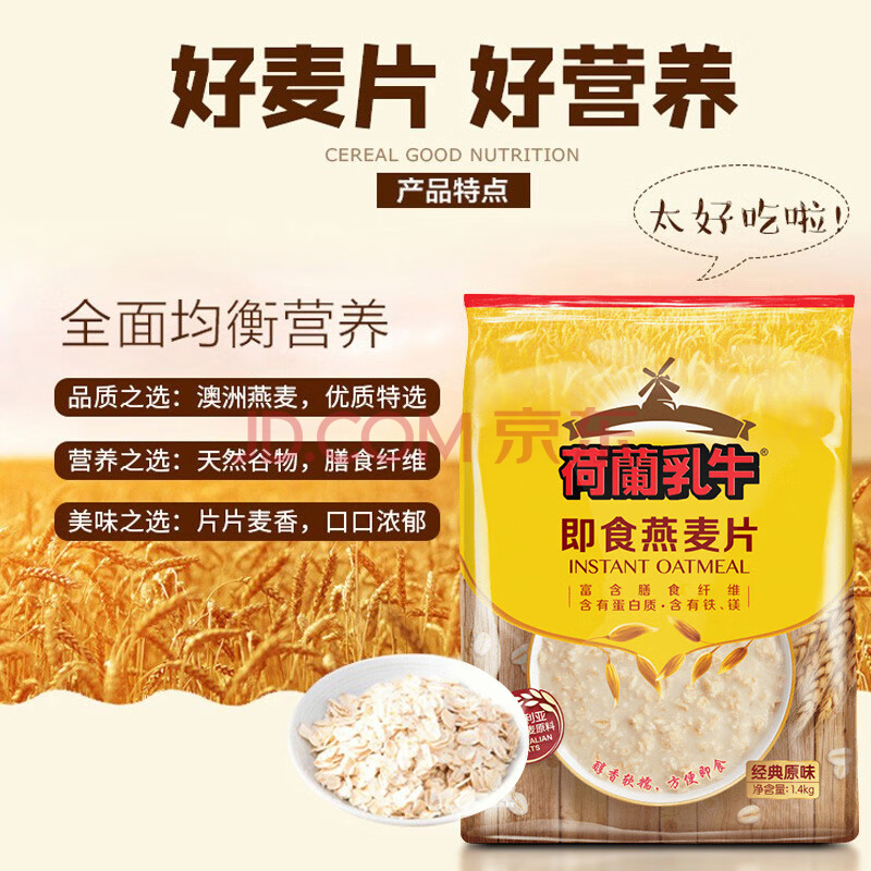 商品相册:荷兰乳牛 即食燕麦片 早餐即食健身代餐无蔗糖1400g 可搭配牛奶/酸奶食用第