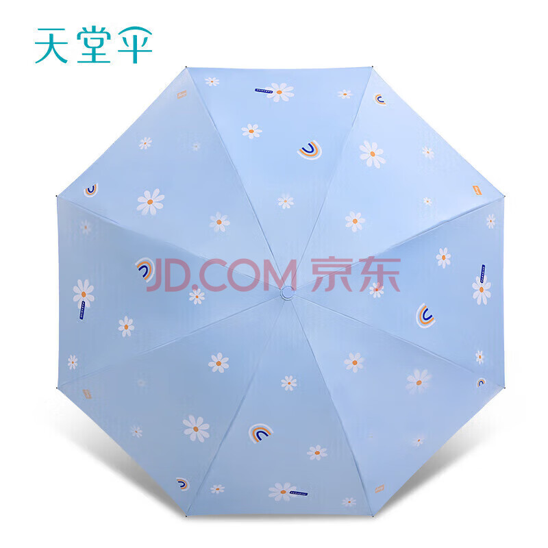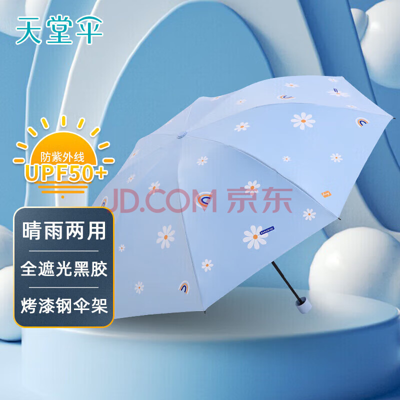 商品相册:天堂 防紫外线晴雨伞三折黑胶防晒太阳伞遮阳伞57*8骨 云裳冰川蓝第