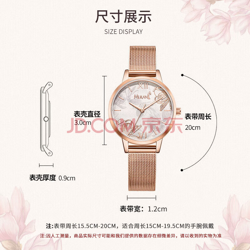 商品相册:迪士尼(Disney)手表女花木兰初中高中生防水时尚简约中学生考试手表SM-17009RG第