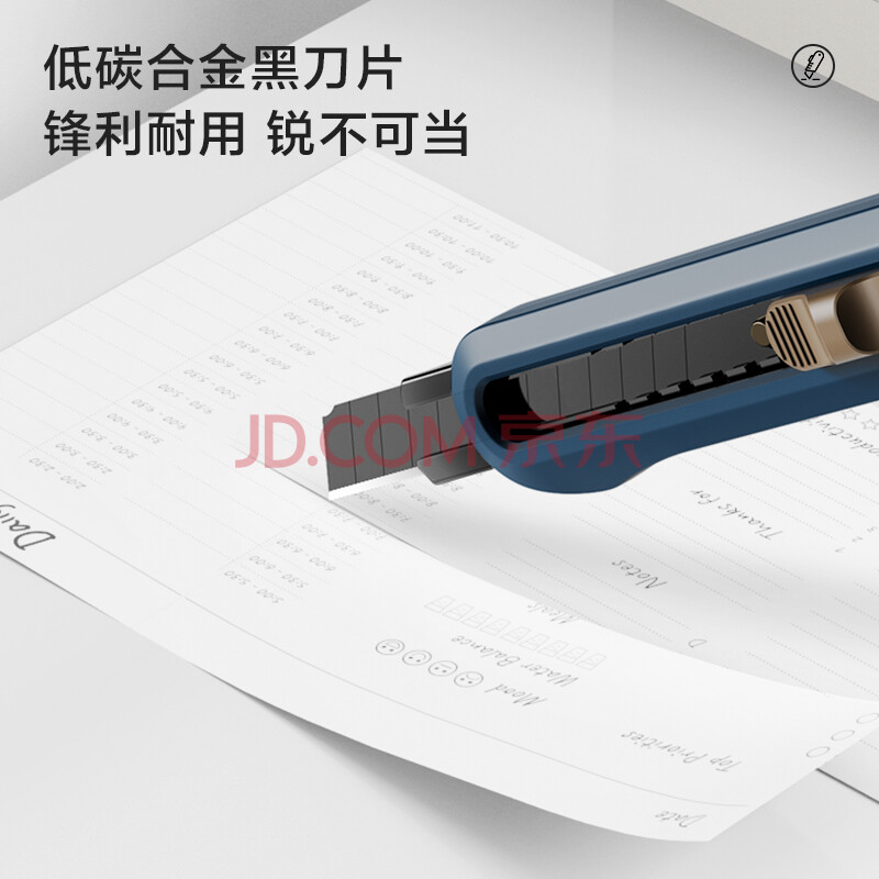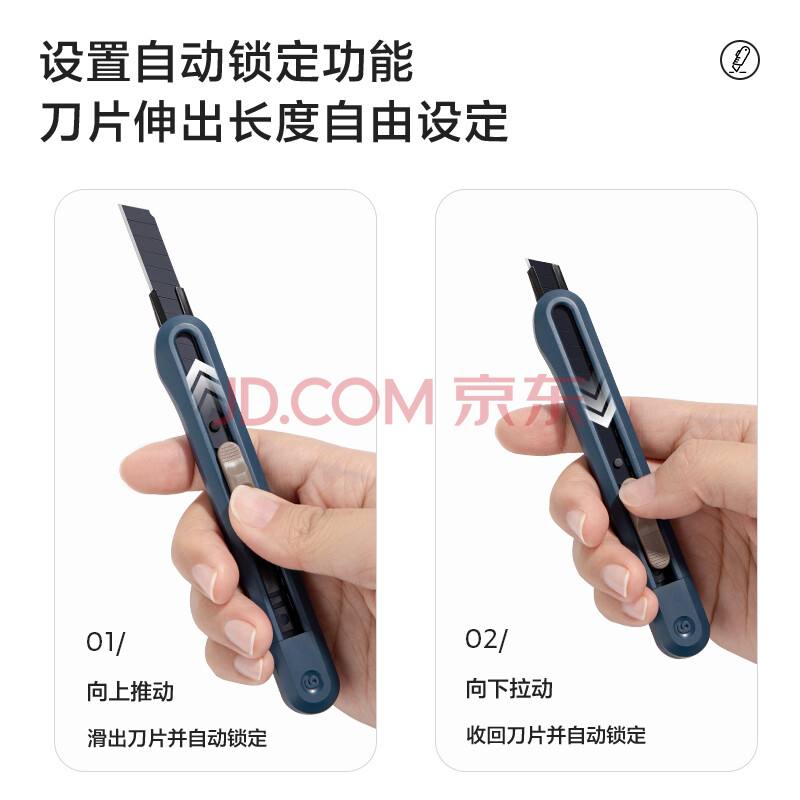 商品相册:得力(deli)小号撞色设计美工刀壁纸刀裁纸刀 办公用品 尾部自带折刀器 蓝色 NS063第