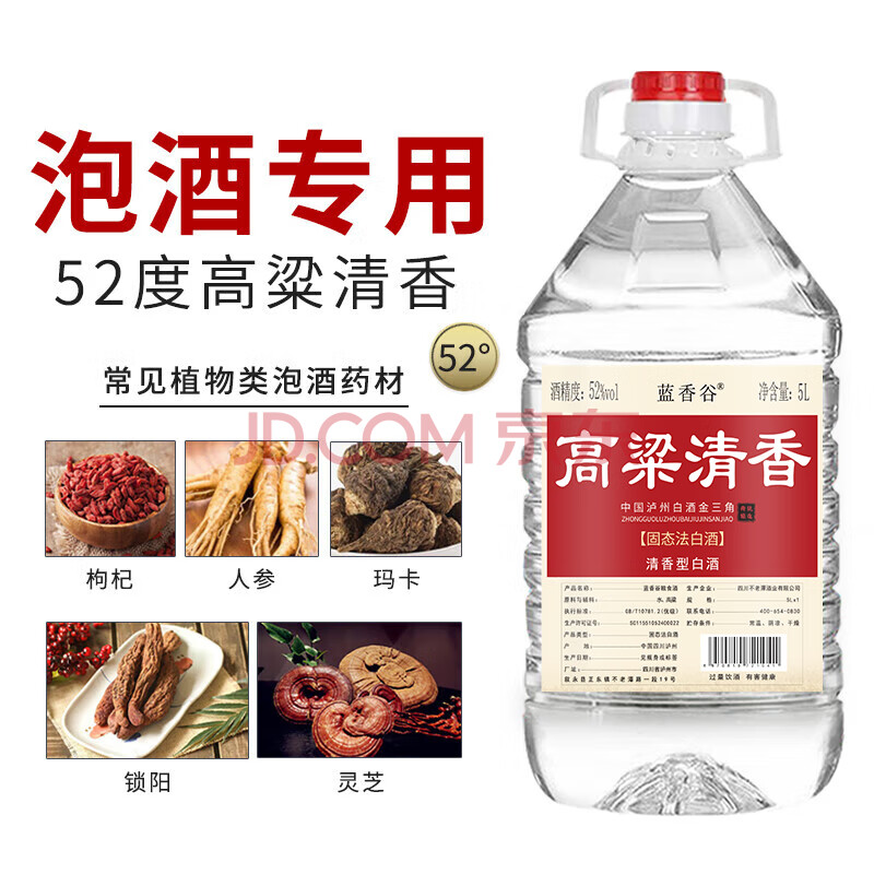 商品相册:蓝香谷 泸州糯红高粱酒泡酒粮食酒 散装白酒清香型 52度5L 桶装第