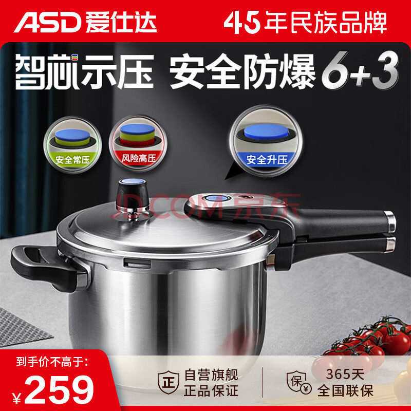 商品相册:爱仕达 ASD 高压锅304不锈钢5.5L智芯显示压力锅燃气电磁炉通用YS22D1WG第