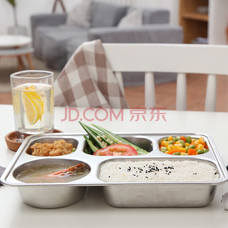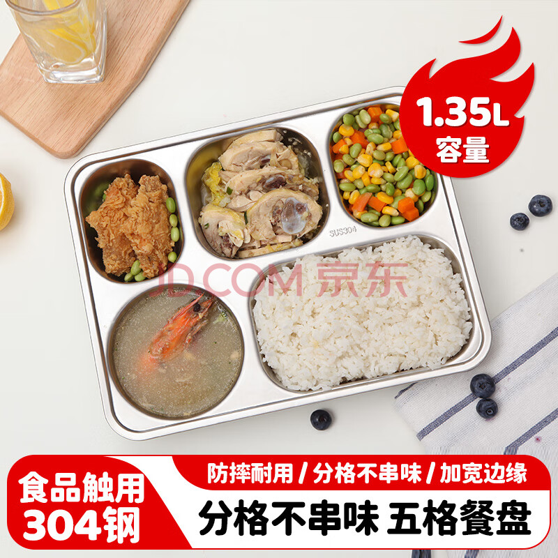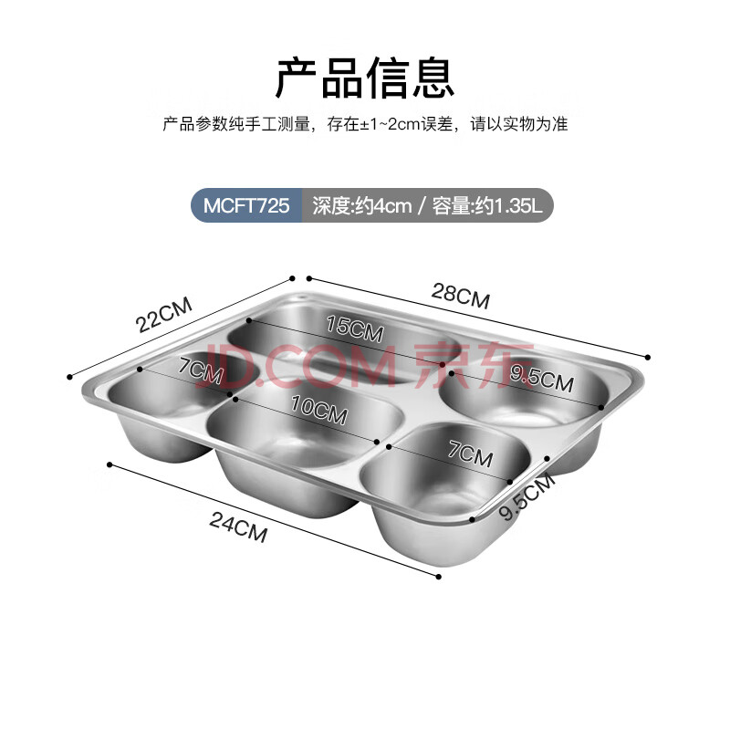 商品相册:美厨(maxcook)304不锈钢餐盘饭盒 5格加深加厚分格快餐盘学生餐盒 MCFT725第