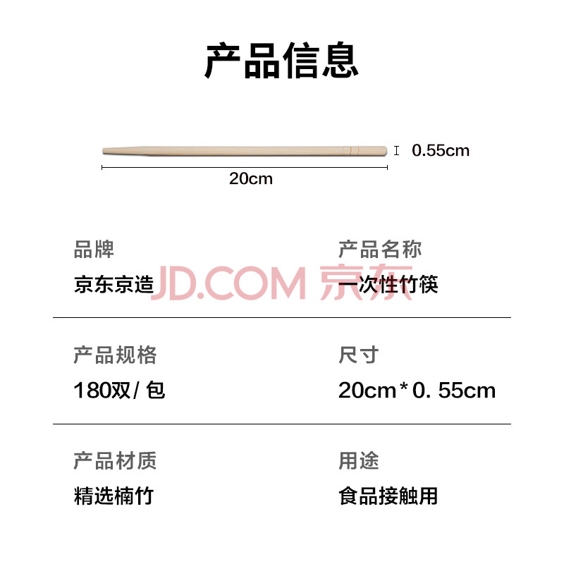 商品相册:京东京造 一次性筷子 独立包装食品级竹筷 家用烧烤露营方便筷【180双】第