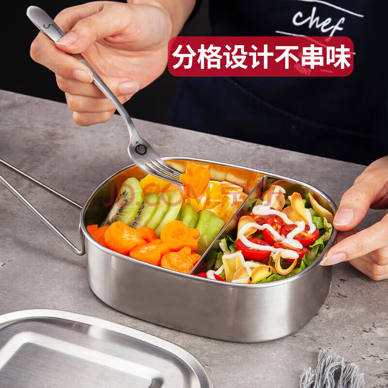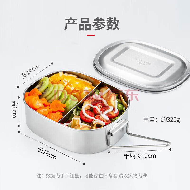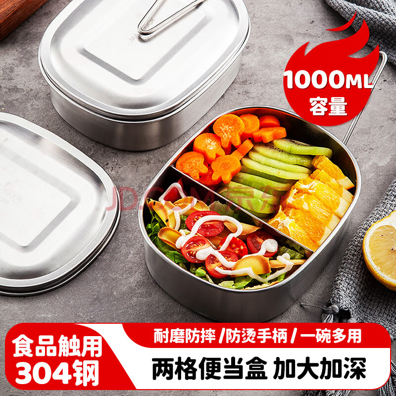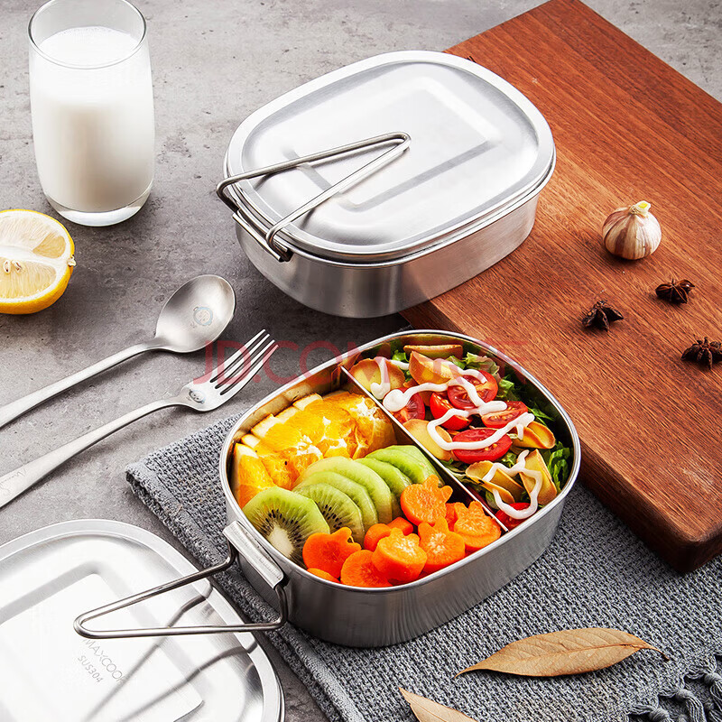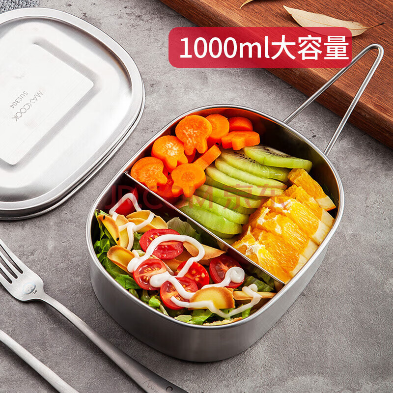 商品相册:美厨(maxcook)饭盒餐盒便当盒 2格304不锈钢学生饭盒食堂(特大号两格)MCFT172第