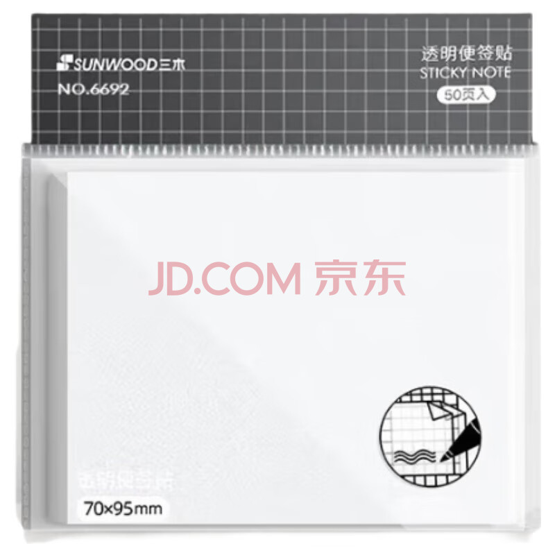 商品相册:三木(SUNWOOD)50张透明便利贴粘性便签纸 70*95mm透视贴n次贴 备忘留言纸/记事贴/自粘留言本办公用品 6692第